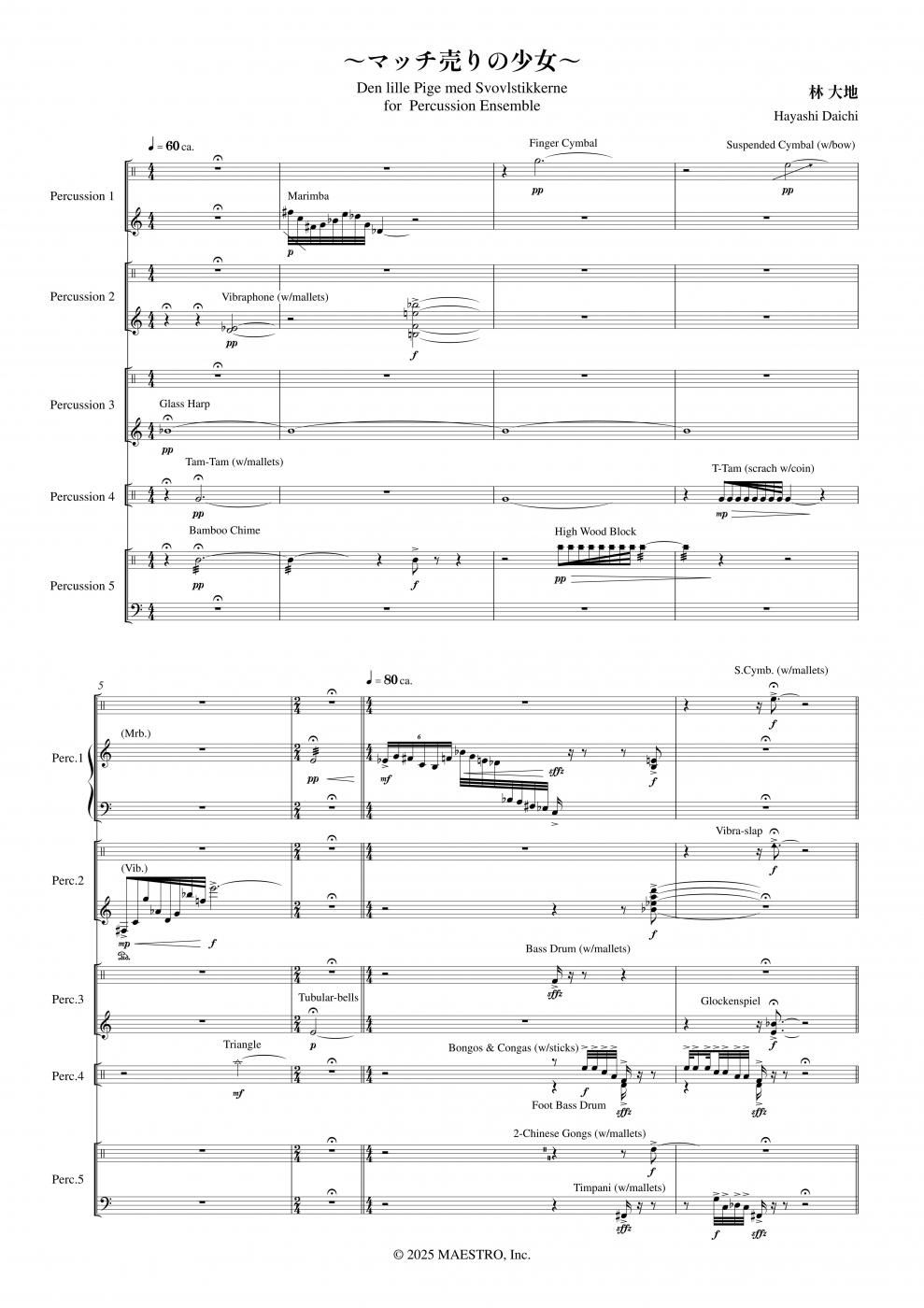 アンデルセン童話《マッチ売りの少女》を題材に、林大地氏が打楽器5重奏のために描いた感動的な物語作品。