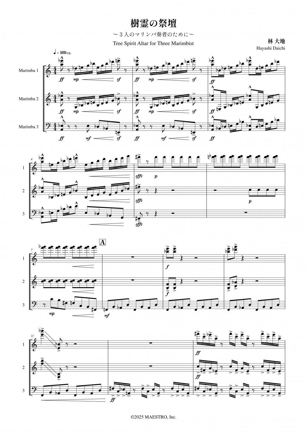 【DL】[打楽器3重奏]樹霊の祭壇〜3人のマリンバ奏者のために〜/Tree Spirit Altar/林大地(Daichi Hayashi)