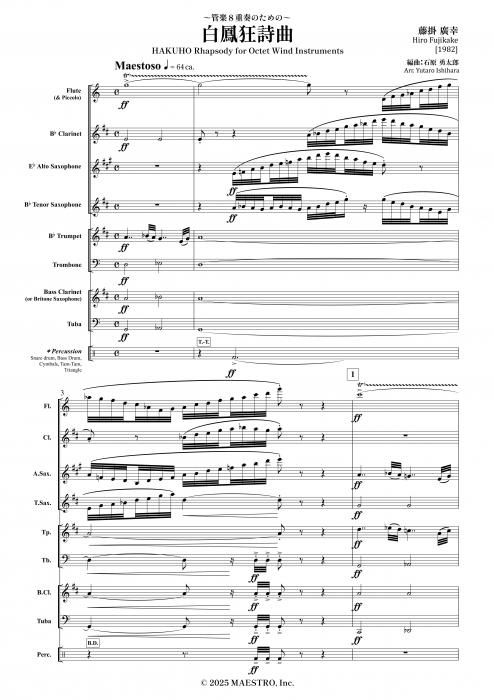 [管楽8重奏]白鳳狂詩曲〜管楽8重奏のための〜/HAKUHO Rhapsody for Octet Wind Instruments/藤掛廣幸/編曲:石原勇太郎